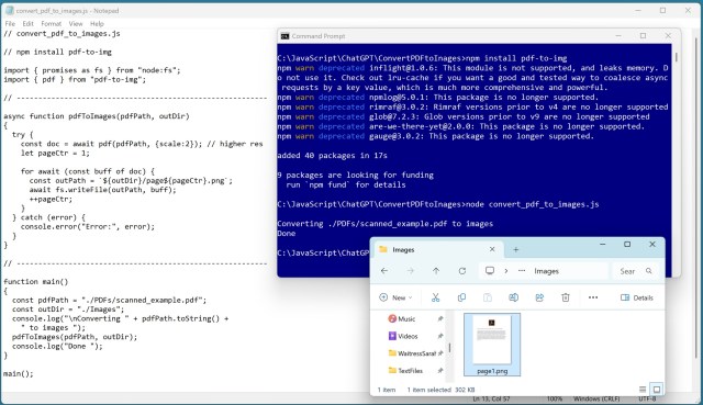 Exploring PDF-to-image conversion using JavaScript led to deprecated sub-libraries in the pdf-to-img package, making it unreliable for production. Consider well-supported Python libraries like PyMuPDF for efficient PDF extraction and text conversion.