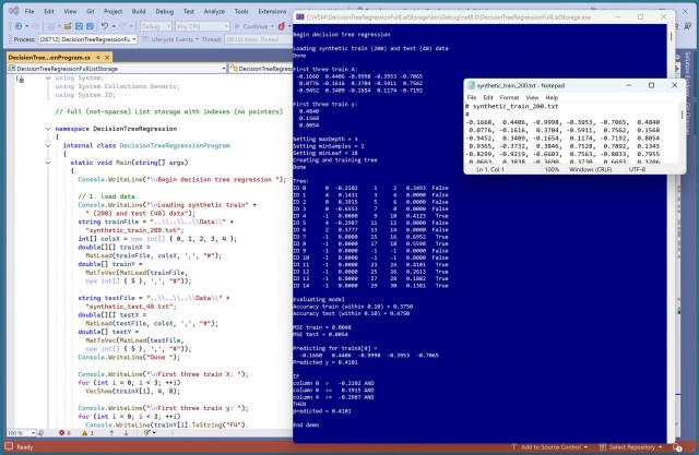 Refactored C# neural network regression design enhances efficiency by moving seed value to Train() method for better initialization. Demo showcases improved accuracy and model prediction capabilities...