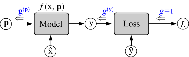 Let a gradient from the scalar loss function $L$ enter the model.