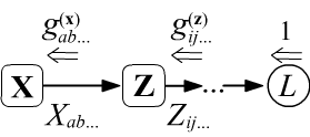 enters some node $\mathbf{Z}$ from the right in the form of a tensor $g^{(\mathbf{Z})}_{ij...}$.