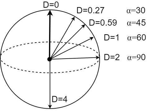 $$ D(\mathbf{x},\mathbf{y}) = (\mathbf{x}-\mathbf{y})^2 = \mathbf{x}^2 + \mathbf{y}^2 - 2\,\mathbf{x}\cdot \mathbf{y} $$ $$ D(\mathbf{x},\mathbf{y}) = 2\,\bigr(1-\cos(\mathbf{x},\mathbf{y})\bigr). $$