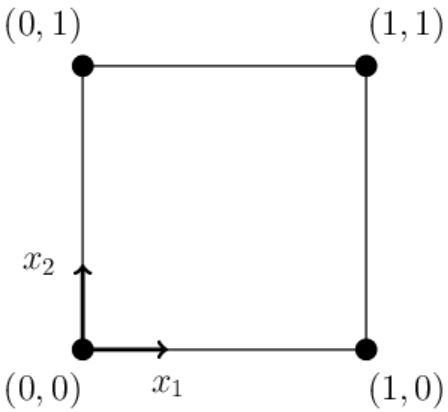 (0,0), (0,1), (1,0), (1,1).