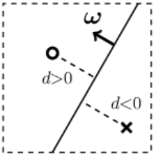 and a cross represents another. They are located on opposite sides of the line (the hyperplane).
