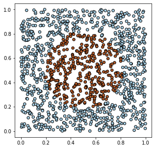 X = torch.rand (1200,2) Y = (torch.sum((X - 0.5)**2, axis=1) < 0.1).float().view(-1,1)