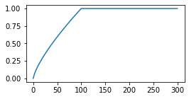 (x/x_{\text{max}})^{3/4} & \text{if}~ x < x_{\text{max}}\\