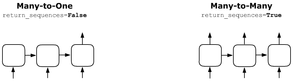 A recurrent layer can return either the hidden state of only the last cell (return_sequences = False) or the hidden states of all cells in the layer (return_sequences = True):