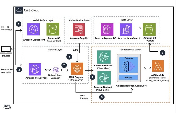 Агентный ИИ-помощник по фильмам Amazon Nova Sonic 2.0 предлагает гиперперсонализированные рекомендации благодаря динамическому диалогу и обратной связи в режиме реального времени. Пользователи могут взаимодействовать с ИИ, чтобы получать индивидуальные предложения по фильмам и анализ сцен, благодаря сложной архитектуре, включающей такие инструменты, как Strands Agents SDK и Amazon Bedrock Agen...