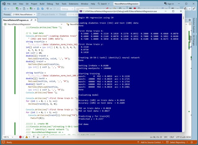 Автор делится опытом применения набора данных по диабету в регрессионной модели на основе нейронной сети на языке C#, которая позволяет точно прогнозировать показатели диабета. Благодаря нормализации данных и настройкам нейронной сети были получены результаты, сопоставимые с результатами других регрессионных моделей.