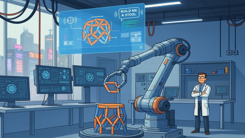 Система Speech-to-Reality преобразует голосовые команды в реальные объекты, сочетая технологии обработки естественного языка, 3D генеративный ИИ и роботизированный монтаж. Пользователю достаточно попросить стул, табурет или полку, и робот-манипулятор соберет нужный объект всего за 5 минут.