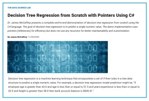 Короткий зміст: «Регресія дерева рішень з нуля за допомогою покажчиків з використанням C#» у журналі Microsoft Visual Studio Magazine описує новий підхід до машинного навчання, акцентуючи увагу на простоті та можливості налаштування. Демонстраційна програма демонструє потужність інтеграції моделей прогнозування та підкреслює важливість ансамблевих моделей для боротьби з перенавчанням.
