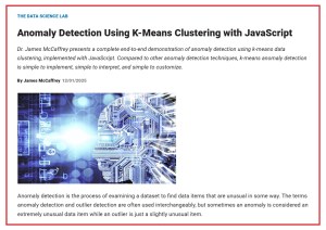 Короткий зміст: Дізнайтеся про виявлення аномалій за допомогою кластеризації K-Means з використанням JavaScript у журналі Microsoft Visual Studio Magazine. Дізнайтеся, як виявляти аномалії в кластерах даних для поліпшення аналізу.